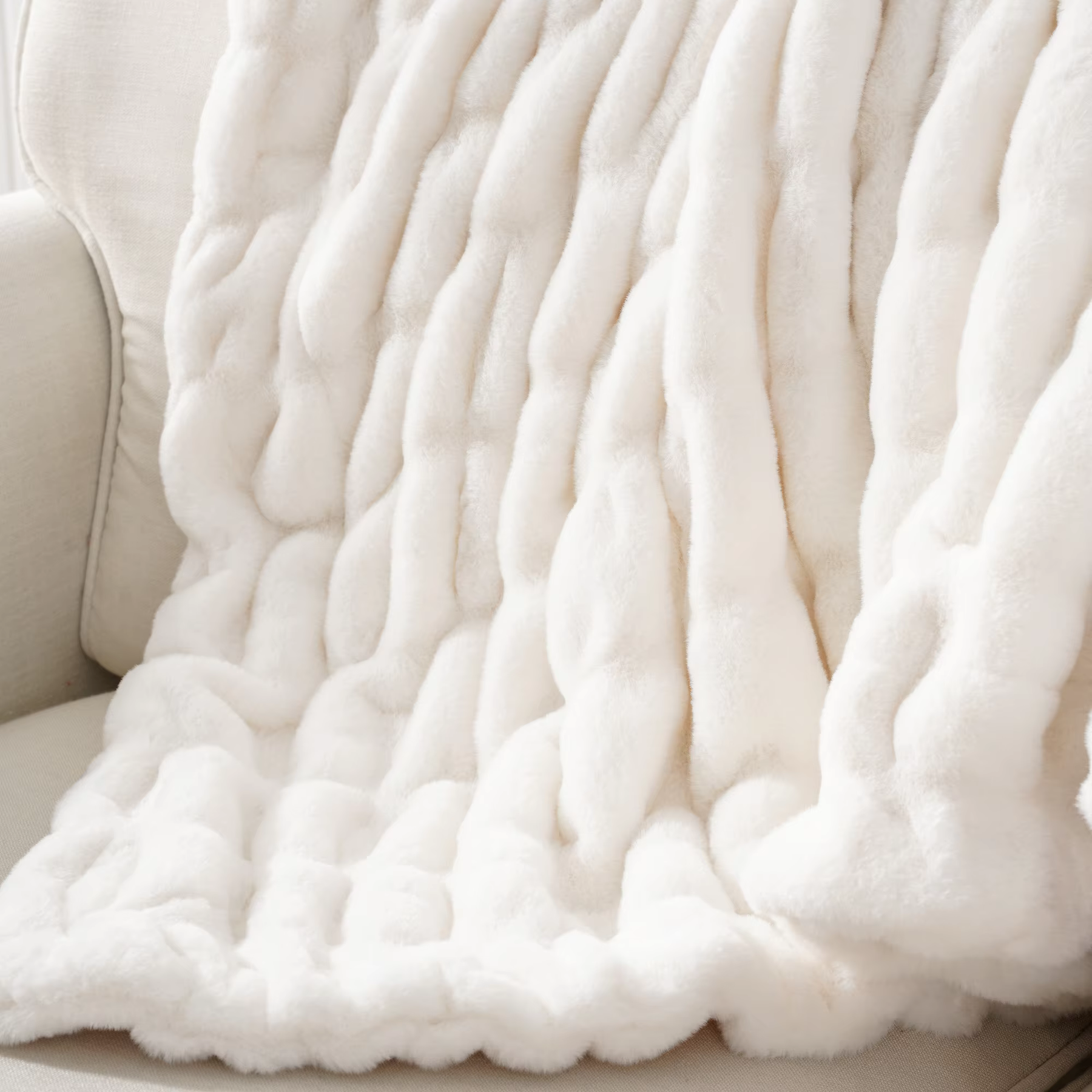 Inviting as well as elegant. This synthetic rabbit fur throw is as soft as it looks, offering an irresistible touch that mimics the beauty of real fur without the guilt. Whether draped over your sofa or wrapped around you, it transforms every moment into one of pure pleasure.