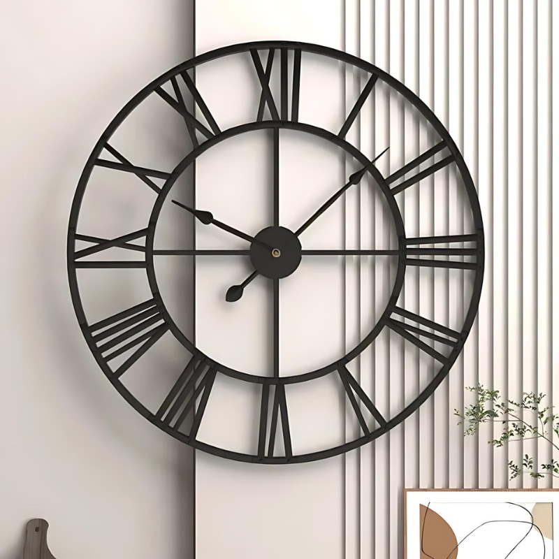 Combining a sturdy iron construction with an elegant and modern aesthetic, this wall clock is a statement piece for any room. The bold Roman numerals add a touch of timelessness, while the minimalist design ensures it blends seamlessly with contemporary decor. Silent and precise, it is not just a clock—it is a centerpiece.